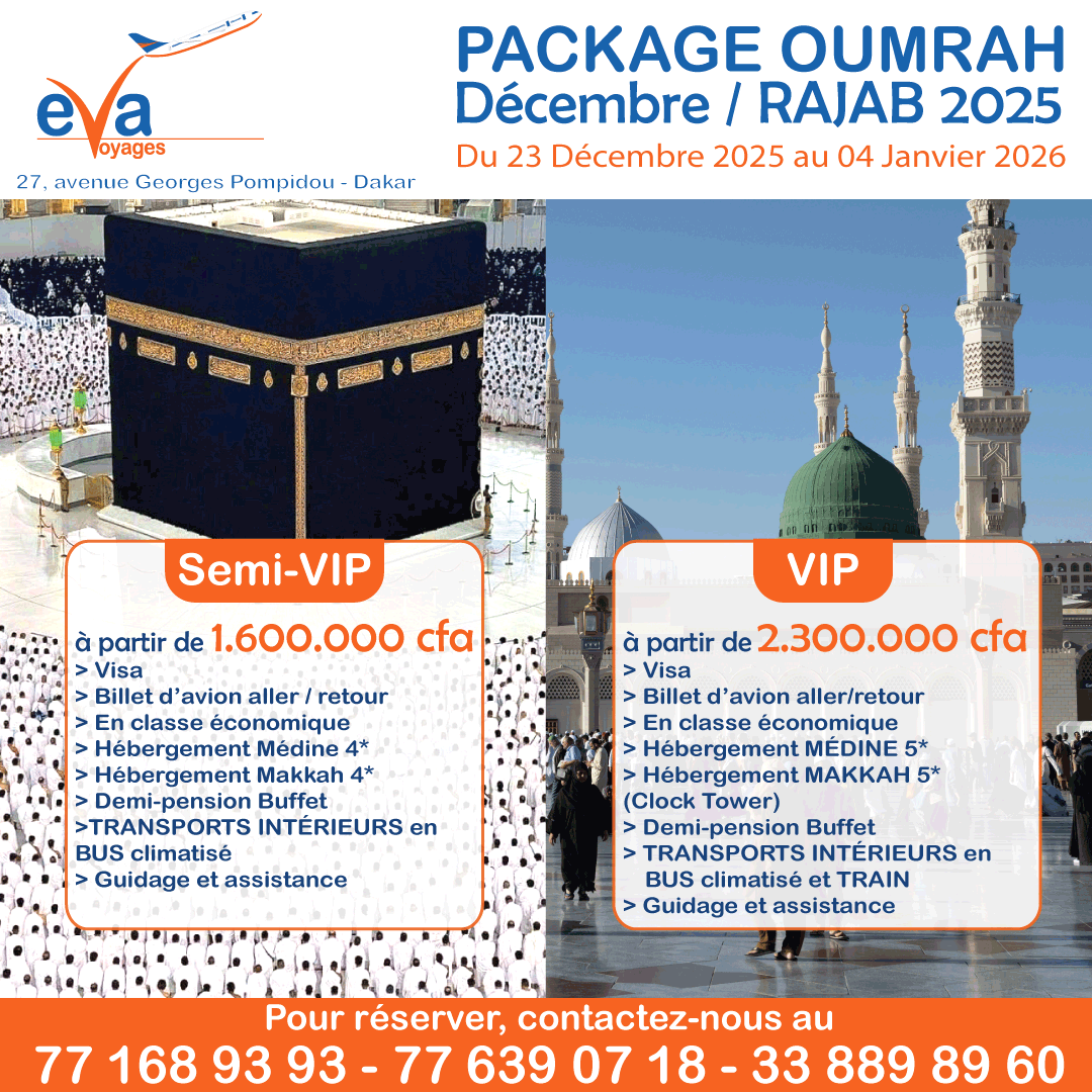 Choisissez un Package Oumrah Décembre/RAJAB avec EVA VOYAGES.